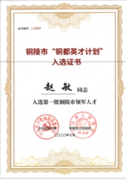 九、趙敏繼曾獲得安徽省技術創(chuàng)新領軍人才稱號后,2020年又入選銅陵市銅都英才計劃,被中共銅陵市委、銅陵市人民政府授予首批銅陵市領軍人才稱號。