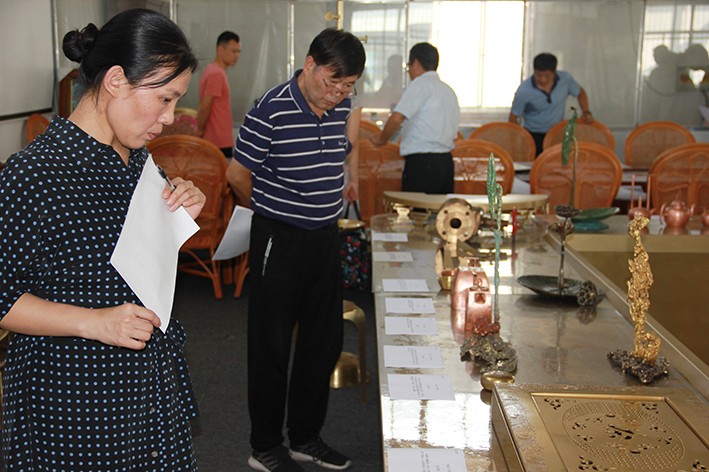 專項賽邀請了澳大利亞著名藝術(shù)家Cherina,青銅器專家、研究員張國茂,銅陵學院文學與藝術(shù)傳媒學院教授劉靜,銅陵職業(yè)技術(shù)學院副教授、高級工藝美術(shù)師劉哲軍,中國貿(mào)促會環(huán)境藝術(shù)委員會特聘研究員、高級工藝美術(shù)師、安徽省工藝美術(shù)大師趙敏等擔任本次評審專家。評審期間銅陵市委宣傳部副部長朱淑玲,銅陵市經(jīng)信局總工查錢林親臨現(xiàn)場巡視指導。