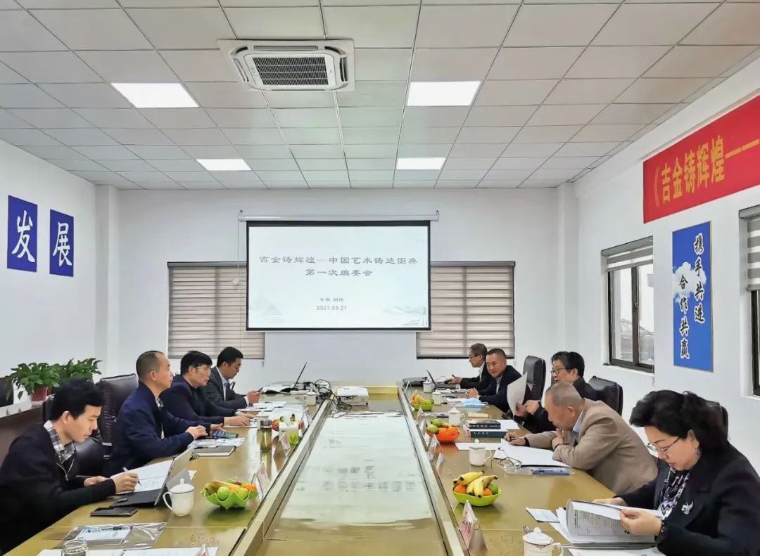 3月26日—3月27日,原中國(guó)傳統(tǒng)工藝研究會(huì)理事長(zhǎng)、中國(guó)非物質(zhì)文化遺產(chǎn)專家委員會(huì)委員華覺(jué)明先生、上海博物館研究員譚德睿、中國(guó)科學(xué)技術(shù)史學(xué)會(huì)傳統(tǒng)工藝研究會(huì)秘書(shū)長(zhǎng)王希吟、中國(guó)鑄造學(xué)會(huì)秘書(shū)長(zhǎng)劉鴻超、《鑄造》雜志社原總編輯葛晨光、廣州美術(shù)學(xué)院副教授賴錫鴻、中國(guó)科技出版社編輯辦公室主任王曉義等一行來(lái)公司舉行由中國(guó)科學(xué)技術(shù)史學(xué)會(huì)傳統(tǒng)工藝研究會(huì)、中國(guó)鑄造學(xué)會(huì)、銅陵銅官府文化創(chuàng)意股份公司擬與中國(guó)科學(xué)技術(shù)出版社聯(lián)合出版中英文版著作《吉金鑄輝煌---古今中國(guó)藝術(shù)鑄造圖典》的第一次編委會(huì)會(huì)議。
